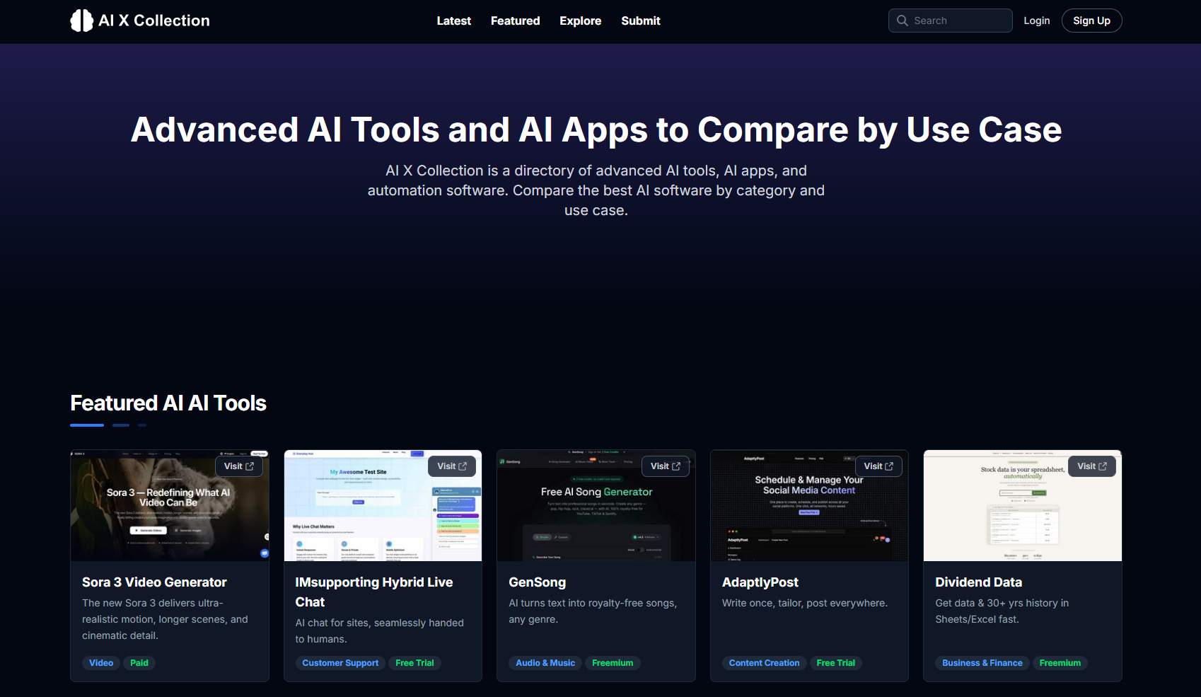 AI X Collection is an AI tools directory focused on advanced workflows, specialized automation, research, and experimentation.