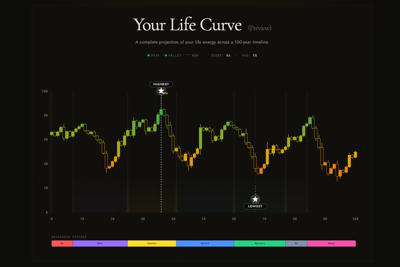 AstroCurve reveals your turning points with Swiss Ephemeris precision.