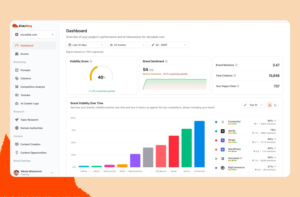 ClayHog provides a holistic view of your brand’s visibility in AI search. This measurement helps you understand your overall presence and track improvements over time.