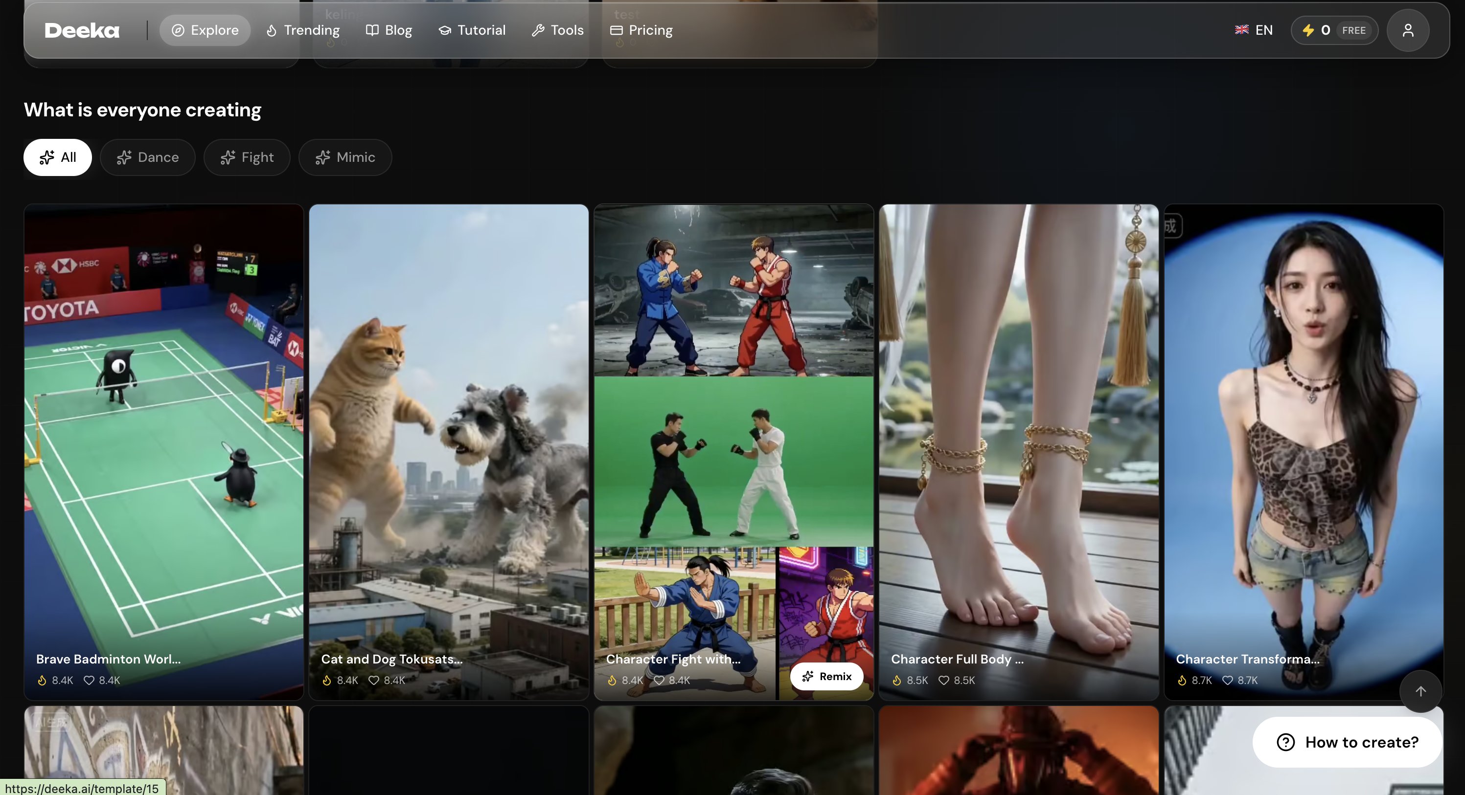 Deeka is a free AI video generator that lets you replace yourself into any trending video template with just one click. Powered by SeeDance 2.0, Deeka offers over 1,000 face swap templates specifically designed for TikTok, Instagram Reels, and YouTube Shorts.