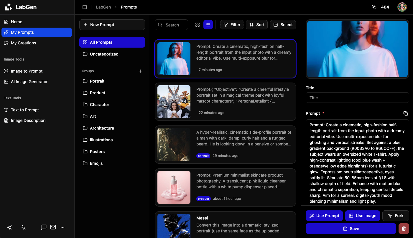 Image to Prompt Generator & Prompt Manager – AI Creation Platform | LabGen
