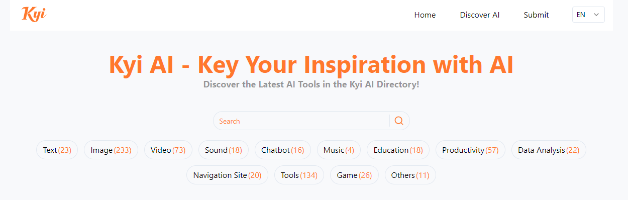 At its core, Kyi AI operates as a curated AI tools directory, offering a wide range of categories that make navigation intuitive and efficient. Users can explore tools related to text generation, image creation, video production, sound processing, chatbots, music, education, productivity, and data analysis, among others. Each category contains a selection of tools tailored to specific use cases, allowing users to filter and discover solutions that align with their goals. This structured approach eliminates the need to search across multiple platforms, saving time and effort.