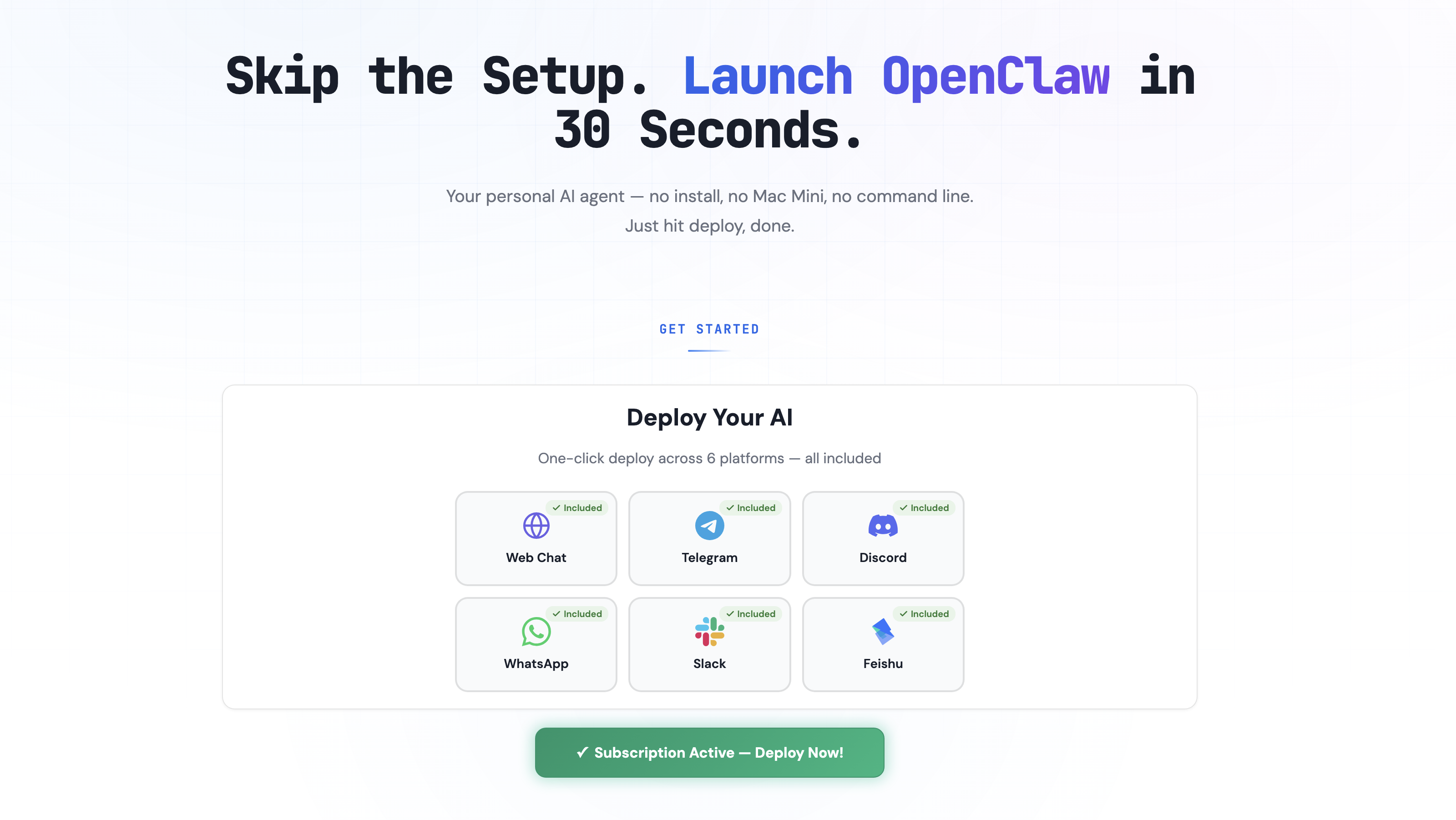 OpenClaw — the AI that actually does things. 3,200+ skills. Working 24/7 for you. Skip the setup, deploy in seconds. No install, no coding. One-click, done.