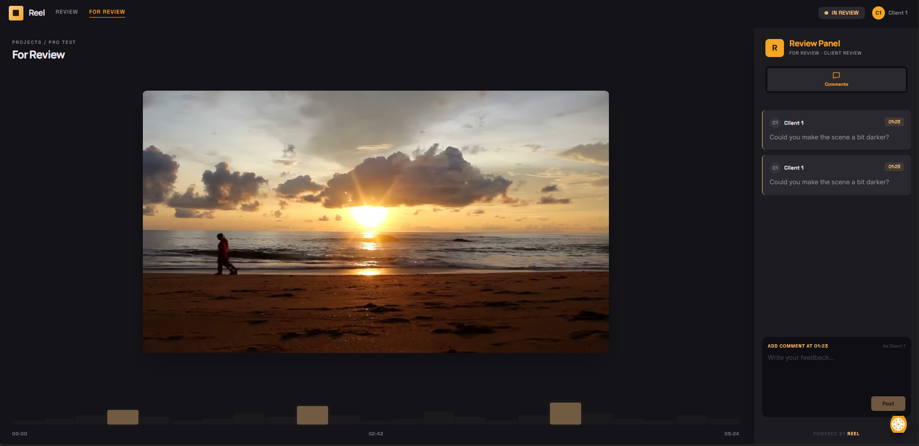 Freelance Video Editors — You're managing multiple clients, multiple projects, and you need a professional review workflow that doesn't eat into your margins. Reel is built around your actual workday.