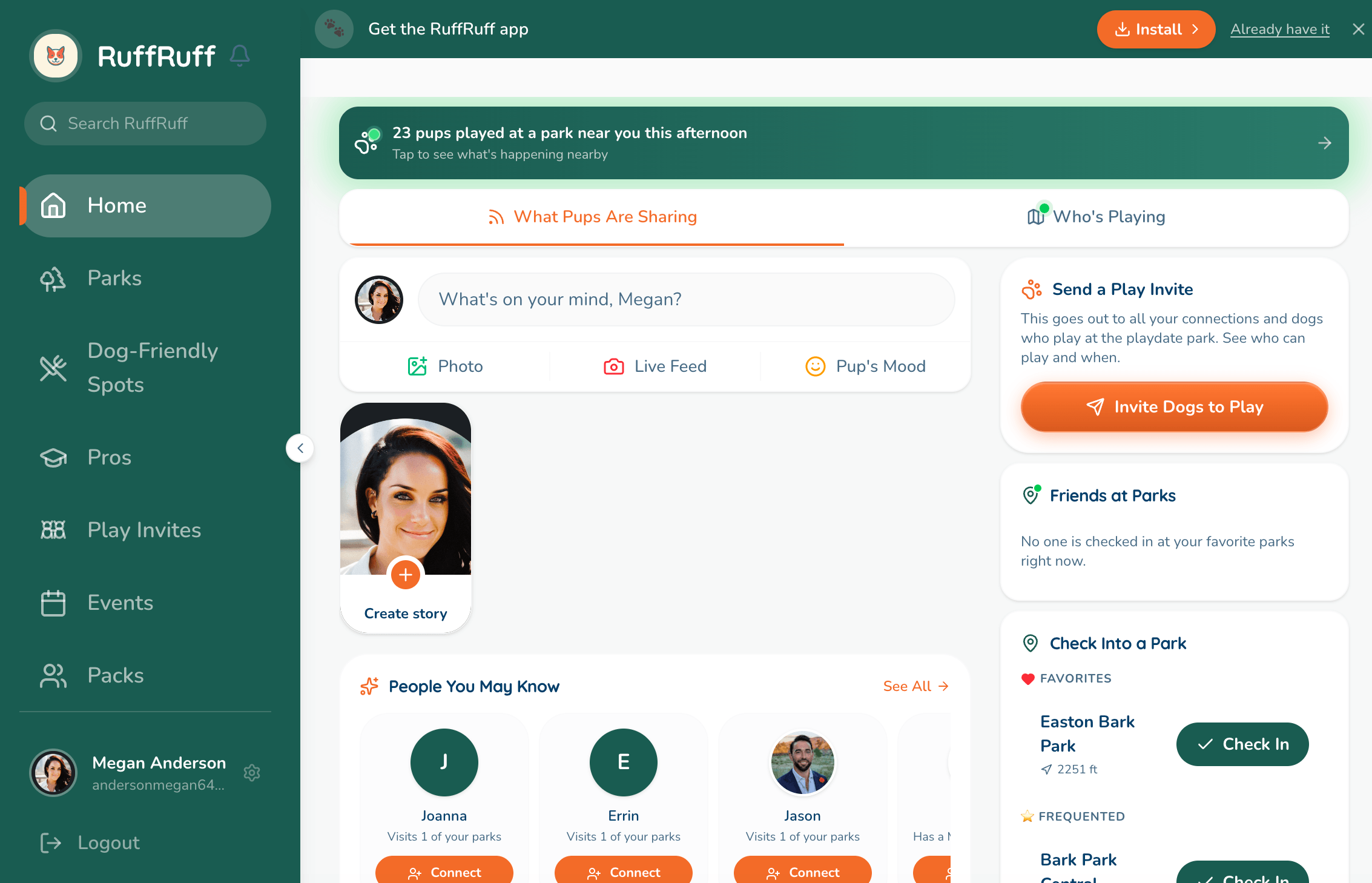 The social app where dog parents connect, find playmates, and never miss a park day.
